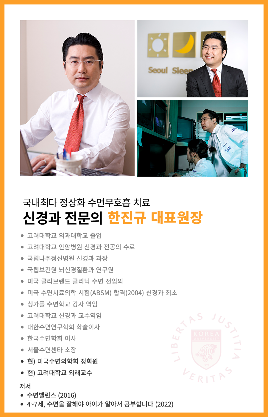 한진규 대표원장 : 수면질환 진료 경험과 국내·해외 수면의학 활동 이력을 한 번에 정리합니다